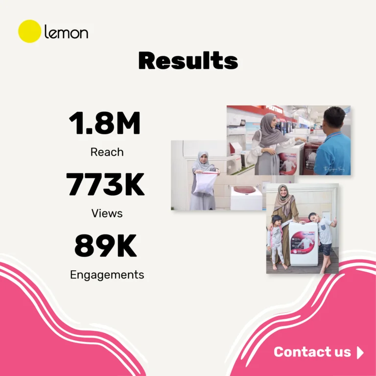 Salah satu brand elektronik yang memilih strategi Influencer marketing dari LEMON adalah Polytron. Polytron sendiri merupakan perusahaan elektronik yang berasal dari Indonesia, pada kesempatan ini Polytron mengenalkan produk elektroniknya yaitu Mesin cuci Zeromatic Belleza yang memiliki keunggulan salah satunya adalah Zeropressure yang memungkinan mesin cuci terus beroperasi meskipun tekanan air di rumah anda kecil
